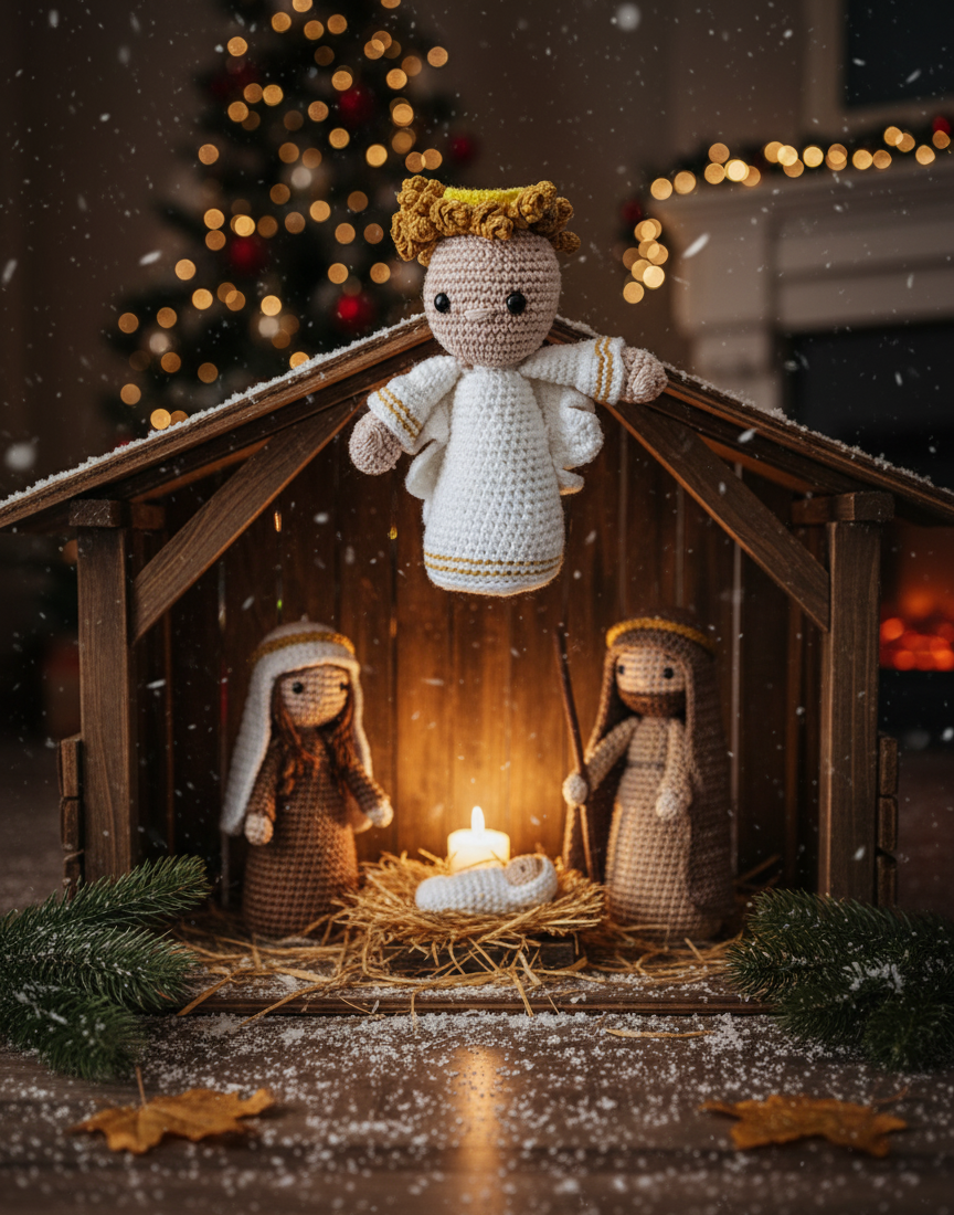 Dit gehaakte figuurtje van de engel brengt zachtheid en licht in elke kerststal. Met liefdevolle hand gemaakt, straalt het een gevoel van rust en vertrouwen uit — een klein symbool van hemelse vrede in huis.