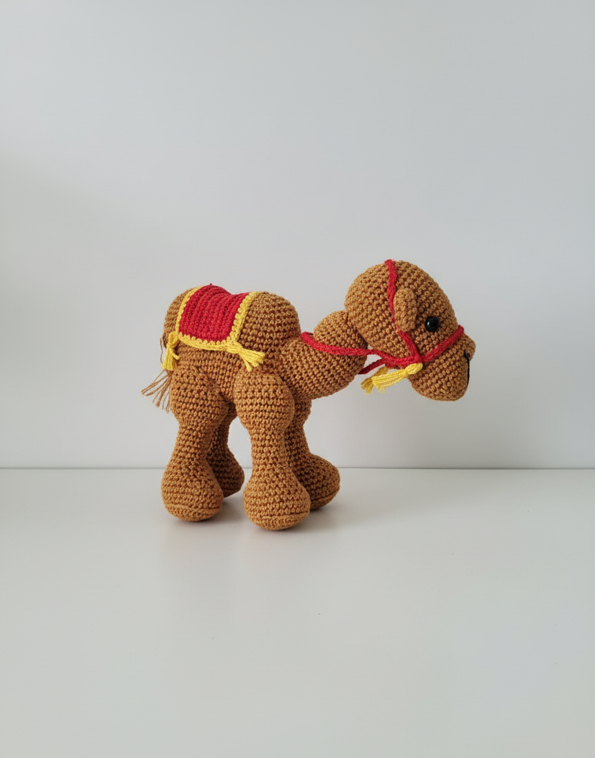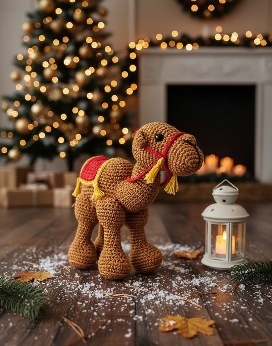 Dit gehaakte figuurtje van de kameel brengt een vleugje avontuur en warmte in elke kerststal. Met zorg en aandacht gemaakt, vertelt het het verhaal van trouw en geduld — een dier dat met waardigheid en zachtheid zijn plaats vindt naast de wijzen uit het oosten.